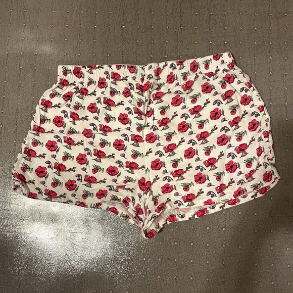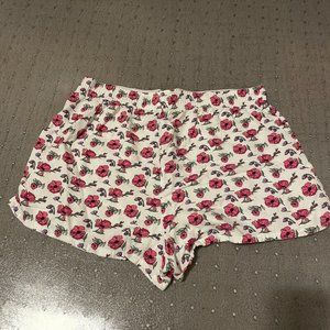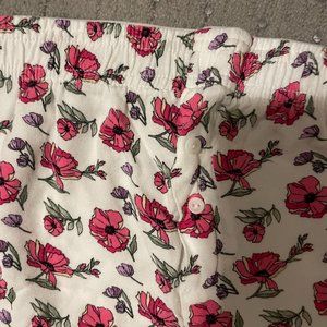 Flower Pajama Shorts with Elastic Waist and White Buttons
