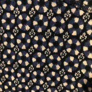 Flower pattern blue, black and white top. Zipper in back. Material is thicker than a normal shirt but lighter than a sweater so this is a great shirt for fall. Barely worn!