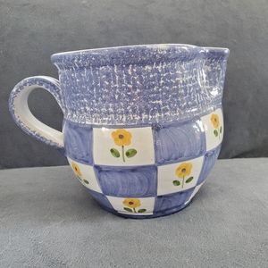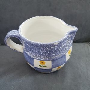 Blue and White Checkered Pitcher with Yellow flowers.