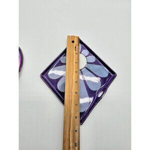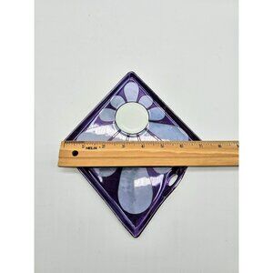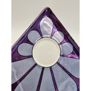 This decorative plate is a beautiful addition to any collection. The Flower Power Art Deco design is eye-catching and unique, featuring purple flowers on a white background. Made in Czechoslovakia during the 1920s, this vintage piece is crafted from bone china and ceramic materials.