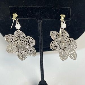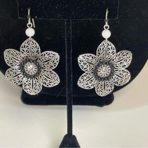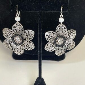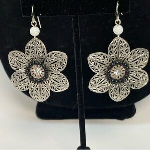 Flower Power Silver Tone Filagree Drop Earrings