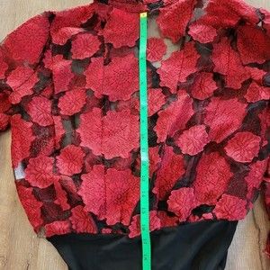 Flower Red Sheer Bodysuit Size Large