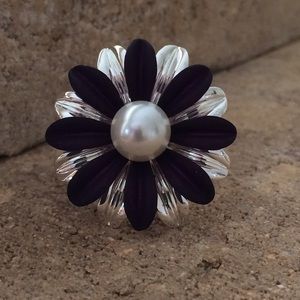 Crystal pearls, Petals colors: Purple and Silver | no adjustable | Silver Plated | Gift Package Flower diameter: 1 inch
