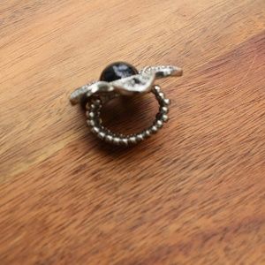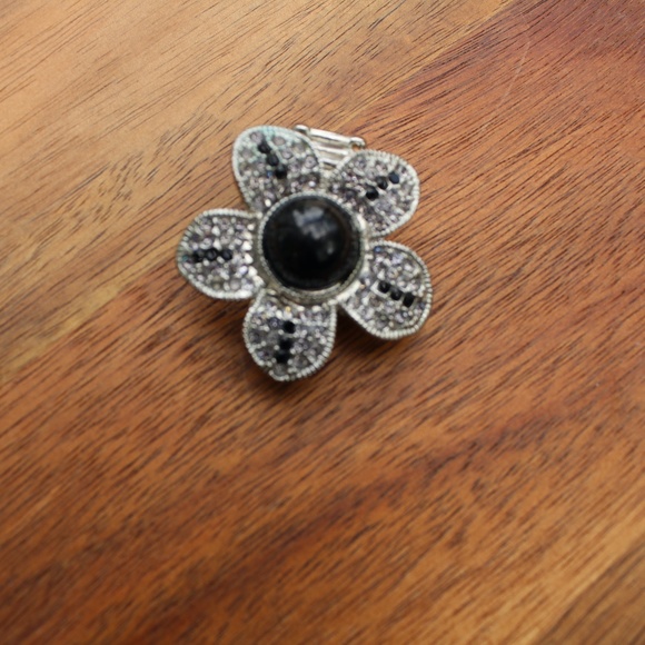 Black pearl flower ring with a stretchy band to fit any size.