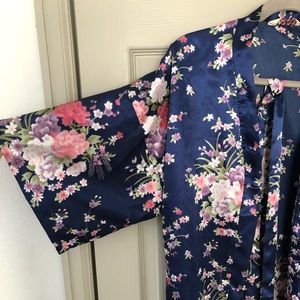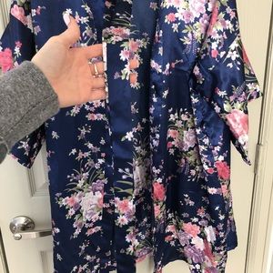 Silky, floral robe. Thin. No size labeled, but would most likely fit a size S-L. I am a size S. Comes with belt. Only worn once—great condition.