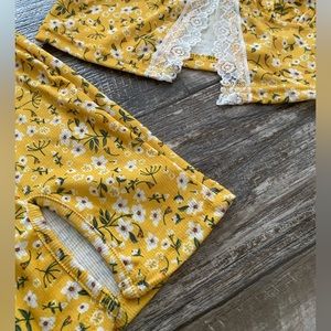 Brand: SHEIN Color: Yellow + White Style: Skirt + Lace Crop Top Size: XS/S Pattern: Flowers