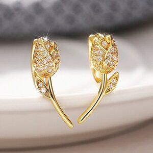 "Flower Shape CZ Earring Studs for Women18k Gold Plating Earrings, HA4505