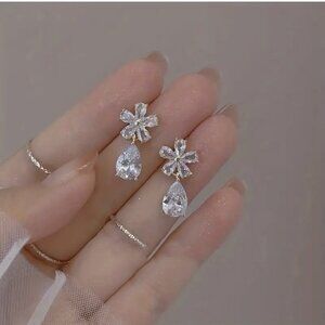Flower Shape and Droplet Shape Shiny Zircon Dangle Earrings for women