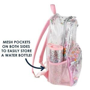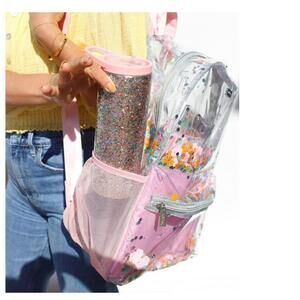 The Flower Shop Clear Backpack is a stylish and functional backpack designed for all people who want some flair and fashion & fun. It features a sequin embellishment, a large size suitable for various uses such as travel, work, and school. The backpack has a clear exterior with a floral pattern, making it perfect for those who want to showcase their fun fashion style. With multiple pockets and compartments, this daypack backpack provides ample storage space for all your essentials. The backstraps and zipper closure ensure easy access and security for your belongings. Made with durable materials and weighing only 1.9 pounds, this imported backpack from Packed Party is a practical and trendy choice for people on the go. and great to keep water off in rainy days.