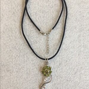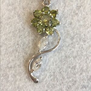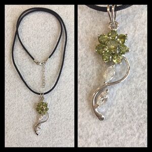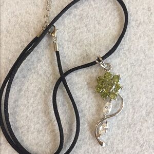 Flower Silver Green & Clear Stone Pendant. Black Silk cord. Brand New. Pendant can be used in any kind of chain. Reasonable offers are always welcome! Feel free to ask questions. Thanks.