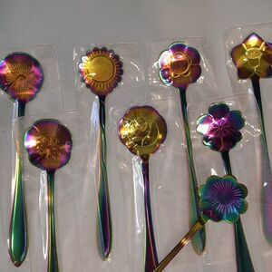 Flower Spoon Set Rainbow Color Stainless Steel Tableware Creative Coffee Spoons
