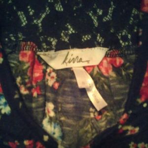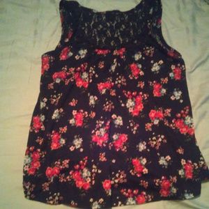 Black tank top w/ pretty flower print. Black lace halfway up the back. Great used condition. Smoke/pet free home.