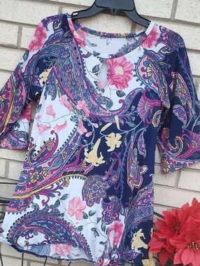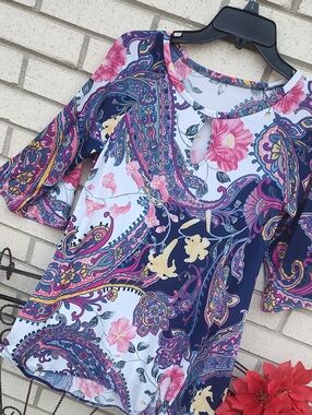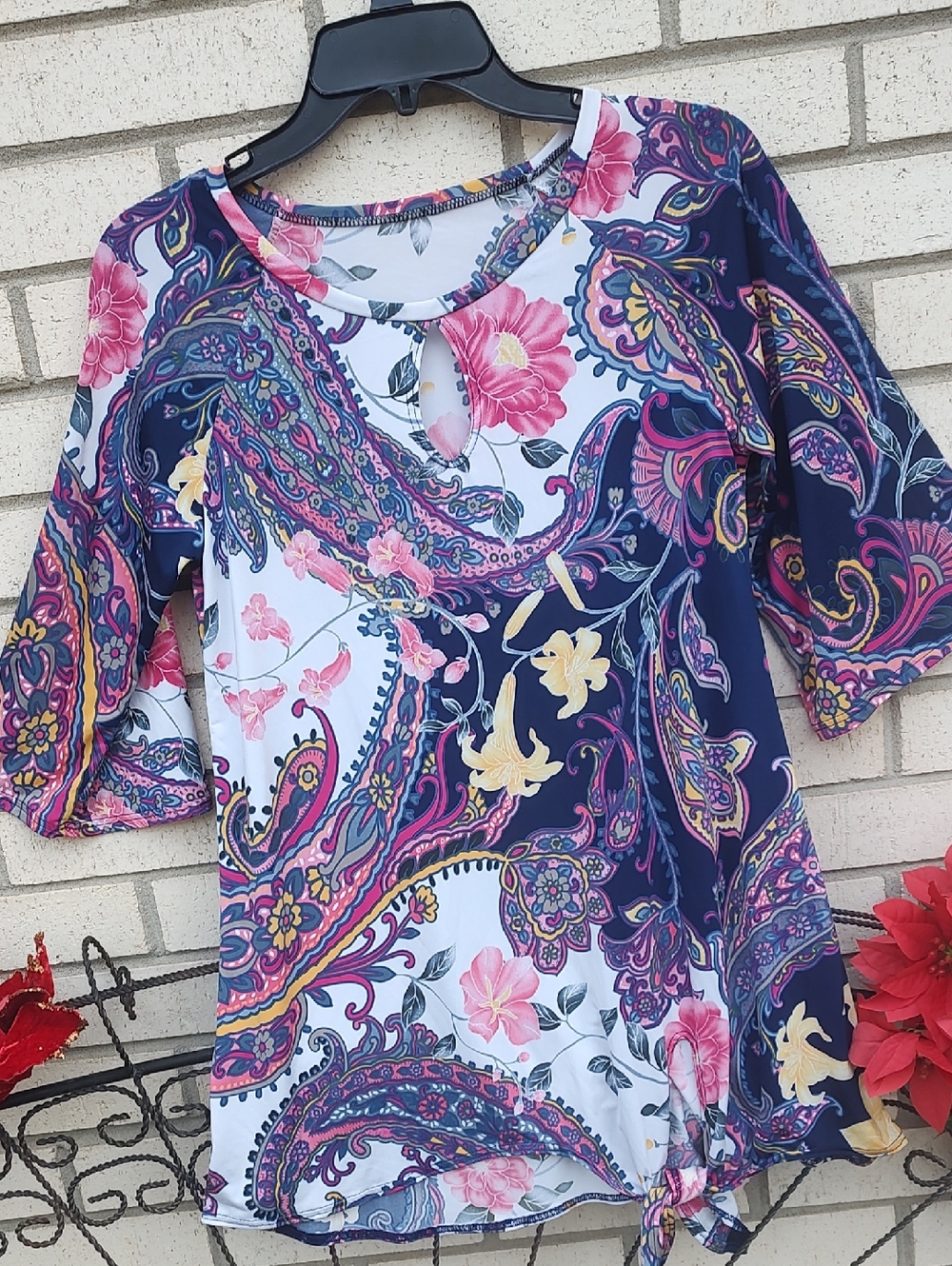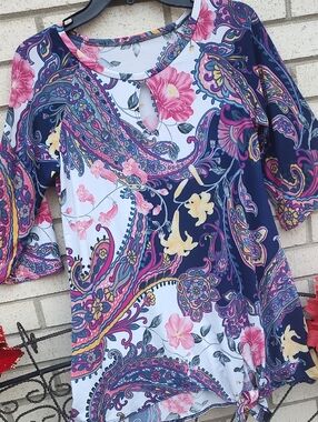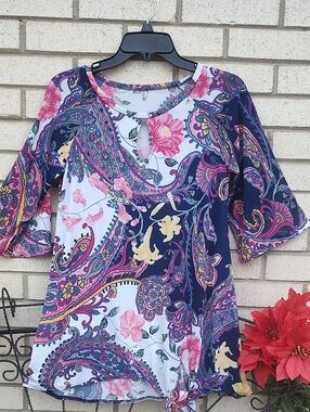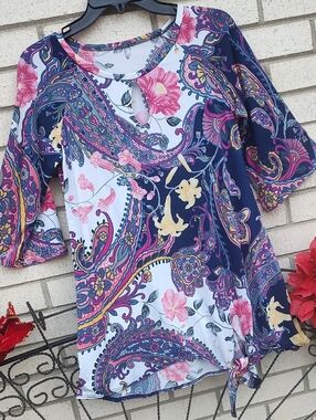 Flower Top/Size small White/Pink /flowers // and other design Gray, blue,tan