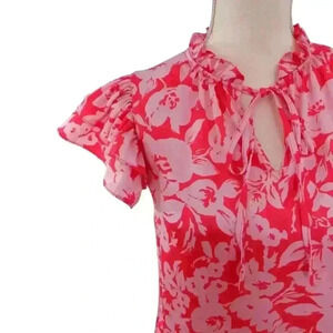 Flower and Feather Pink Floral Top with Flutter Sleeves - Size Small