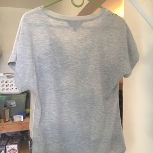 Comfy blouse. Front side satin design, backside cotton grey. Flowy fit, longer in the back.