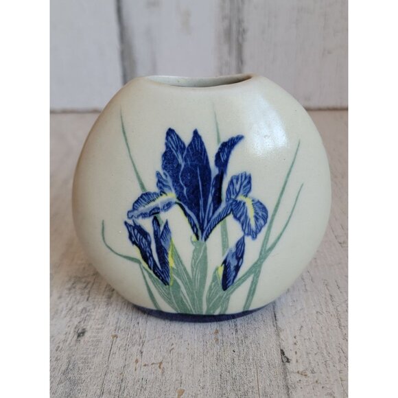 Flower blue iris floral mini vase pottery home decor figure unique