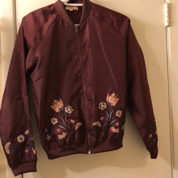 Maroon floral bomber jacket in great condition