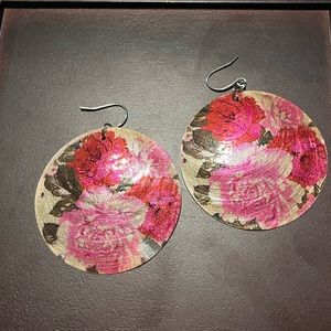Beautiful flower earrings never worn. Cream with pink and red flowers.