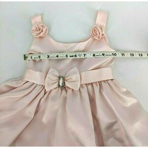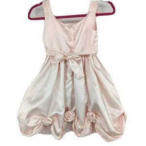 Beautiful Girls Pink Satin Dress with Rose Flowers Accents. Very Good Pre-owned Condition. No rips, holes, or stains. Comes from smoke free environment. Girls size 3T. Measurments in photos.