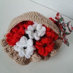 Excellent condition, no box. Flower in Basket Crochet Stitches Vintage Decor Red white brown. Pet and smoke free home.