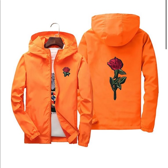 This is an lightweight orange flower jacket hood w any fit