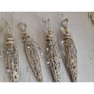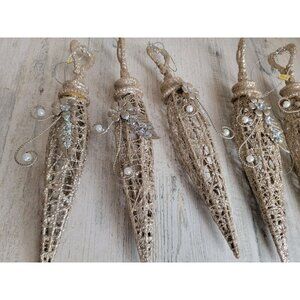 These elegant ornaments add a touch of sophistication to holiday decor. Their intricate lace design and beaded embellishments reflect light beautifully, making them an exquisite addition to any tree.