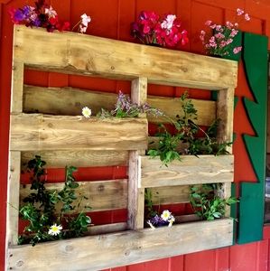 Made out of a pallet, coded with protective stain, and is very unique and ready to have plants!:)