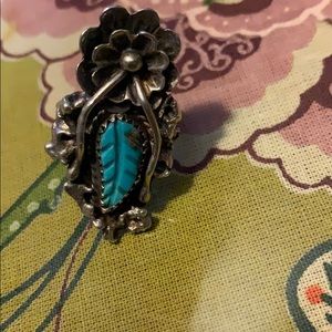 Navajo sterling silver flower ring w/ turquoise leaf ring