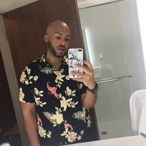 Black floral shirt