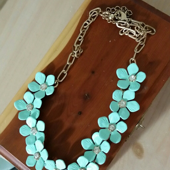 Forever 21 mint flower with rhinestone necklace. NWOT