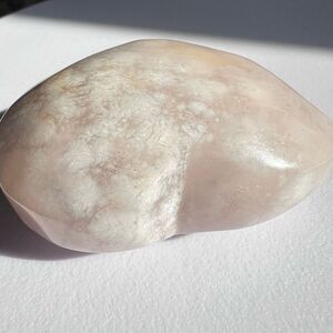 A flower agate heart carving, with its delicate pink and white floral patterns, symbolizes growth and new beginnings. Slight section of golden healer. Metaphysically, it promotes self-growth, emotional healing, and inner peace, while providing a sense of calm and balance. This stone is perfect for enhancing creativity and self-confidence.