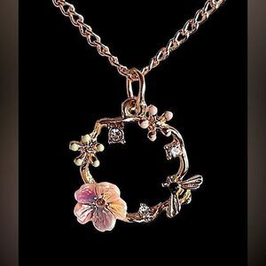 Amazing Detail ❣️ Flower & Bee Necklace Gold & Gemstone 18” pendant 1” Lobster Clasp