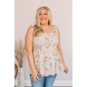 Flower Fields Taupe Floral Baby Doll Top Plus Size