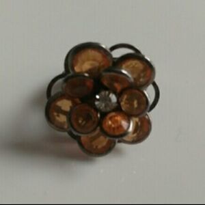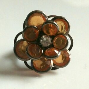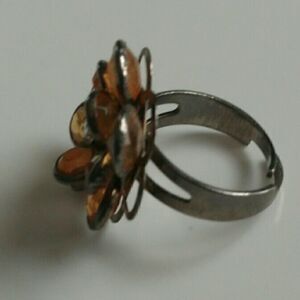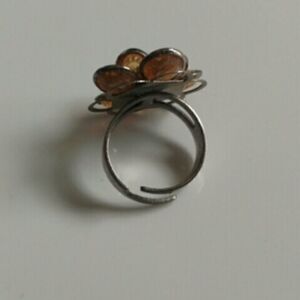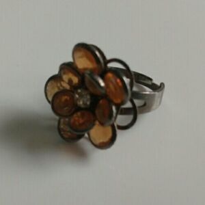 There are 2 layers of orange transparent jewels (petals) on this ring and it is adjustable (currently set at a size 7.) Super cute!