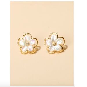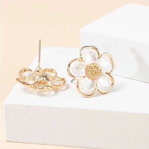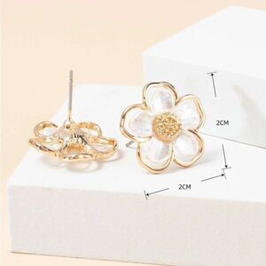 New! Beautiful flower stud earrings. White with gold trim. Ear drop height is approximately .7". Bundle to get a discount. *Reasonable* offers welcome.