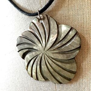 Flower abalone pendant necklace on cord