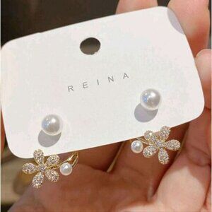 New! Beautiful flower and faux pearl jacket earrings. Approximately .8". Would make a great gift! Bundle to get 30% off.