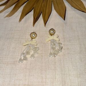 Flower drop bow twist stud dangle earrings in gold tone hardware