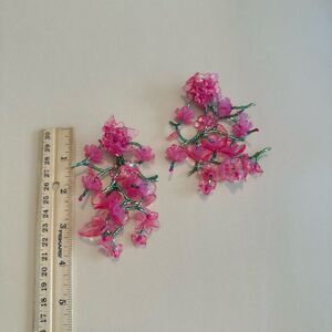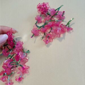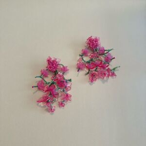 Crystal resin pink boho flower drop dangle stud earrings in silver tone hardware