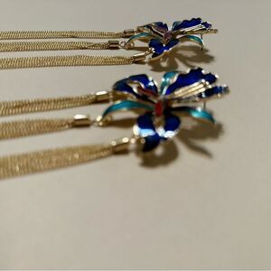 Vintage style flower tassel drop dangle stud earrings in gold tone hardware