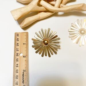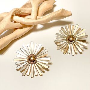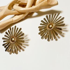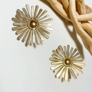 Large gold flower earrings in gold tone