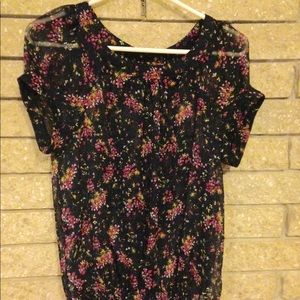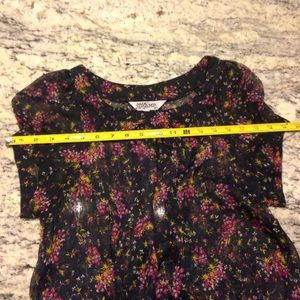 Very unique design! Hard to measure so please see my pics. Sheer poly fabric Tag says L but ok if you're a taller M