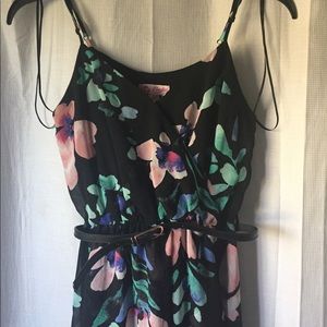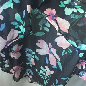 Candies black flowered dress. Solid black skirt underneath layered outer that is shorter in the front and longer in back. Only worn once.