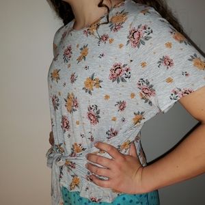Flowered blouse with tie in the front. Can't really tell in pictures but it's a crop top. It's a XXL but fits like a small or medium.