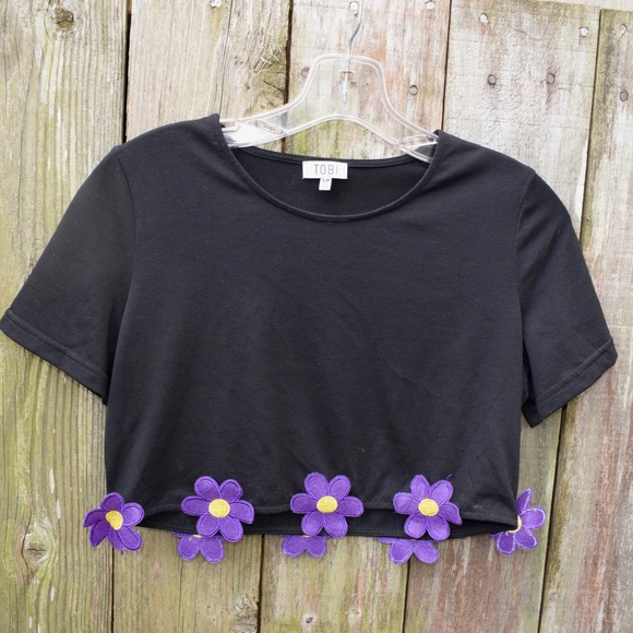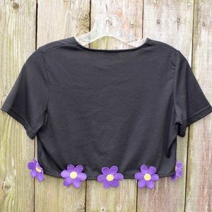 Black crop top with cute little purple flowers Material is very soft Never worn!