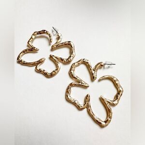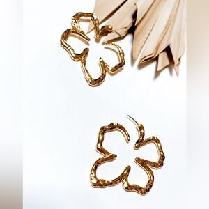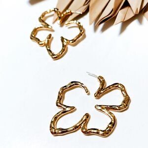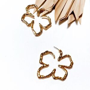Hollow clover hoop cuff earrings in gold tone