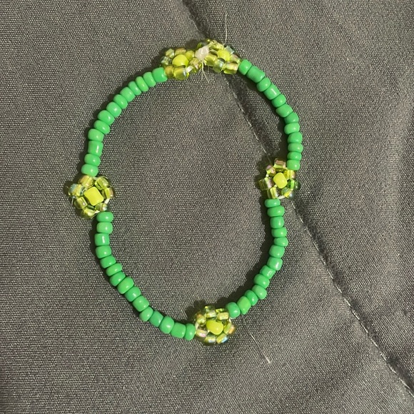 Handmade seed breed bracelet with flowers that are green