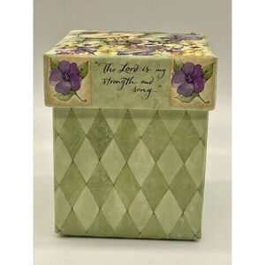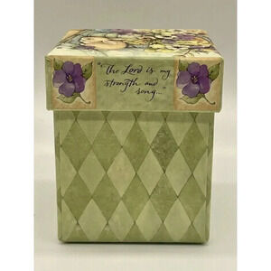 This beautiful multicolored trinket box is perfect for Easter or any occasion. The box features a lovely flower pattern and a cute rabbit subject, making it a great addition to any collection. The box is made of high-quality ceramic material and stands at 3 1/8 inches tall with a length and width of 2 5/8 inches. It is suitable for holding trinkets and comes boxed for safekeeping. This Lang brand box is not handmade and has not been modified. Its country of origin is unknown.