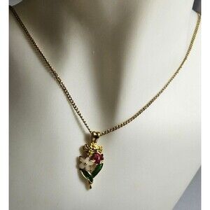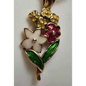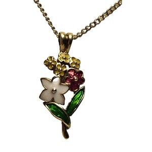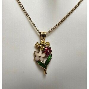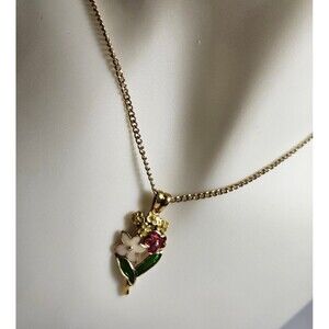 Flowers Pendant with Necklace Golden Tone. Metal.