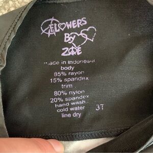 Fun little a-line tulip shaped dress from Flowers by Zoe. It’s made of a soft and stretchy jersey knit fabric that is black on the outsides and color blocked with a band of pink and white geometric fabric down the center. The top as a cool, shiny stretchy black accent near the neck too. In great condition. No stains or holes. Size 3T.